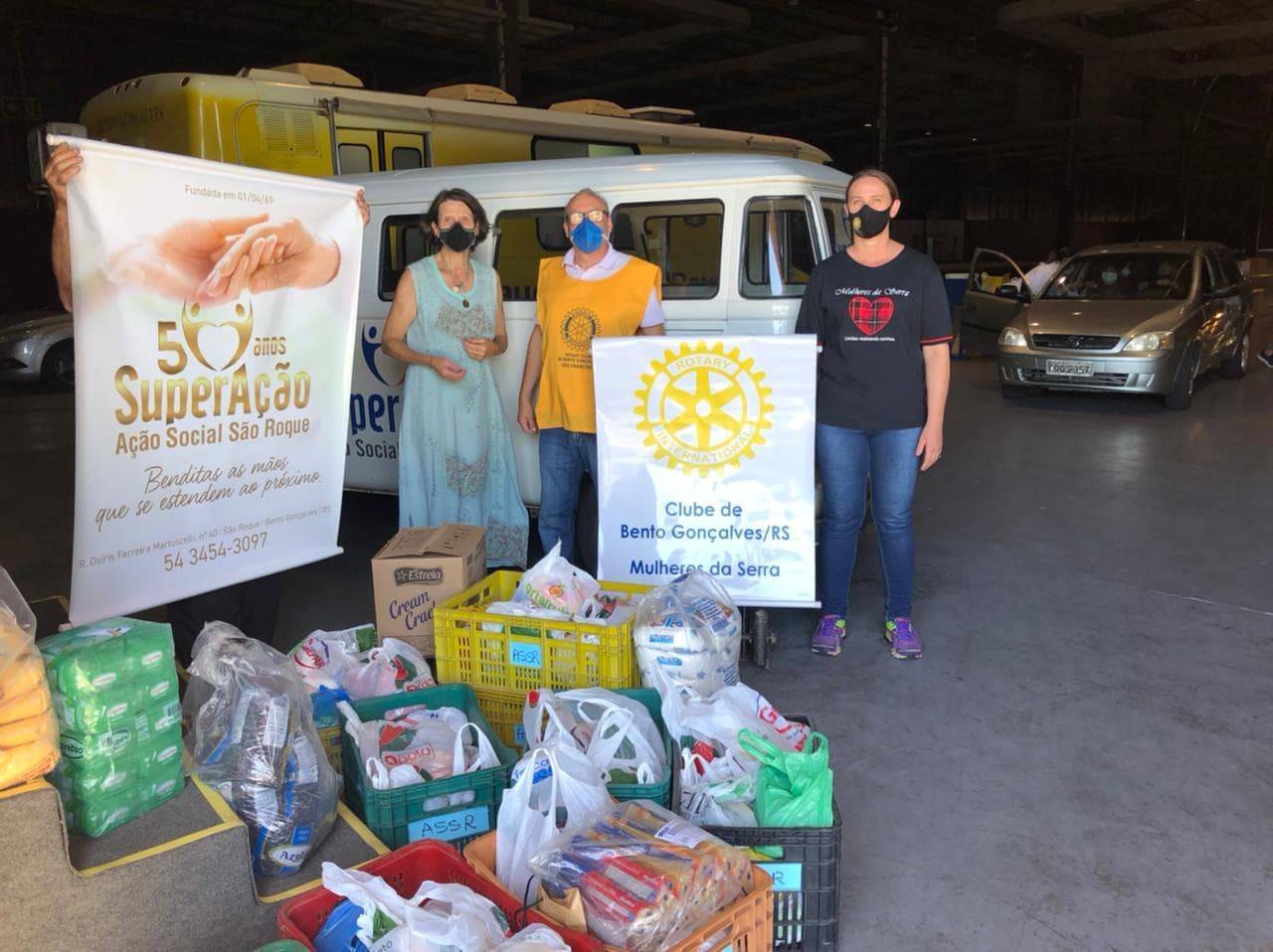 Durante a vacinação contra o Coronavirus, os ROTARIS de Bento Gonçalves , estiveram coletando alimentos a serem destinados as pessoas carentes. Presentes nesta ação, o Rc Mulheres da Serra, com sua presidente Melisse Marcolim e Elisabete Pasin, membro deste clube e governadora assistente .