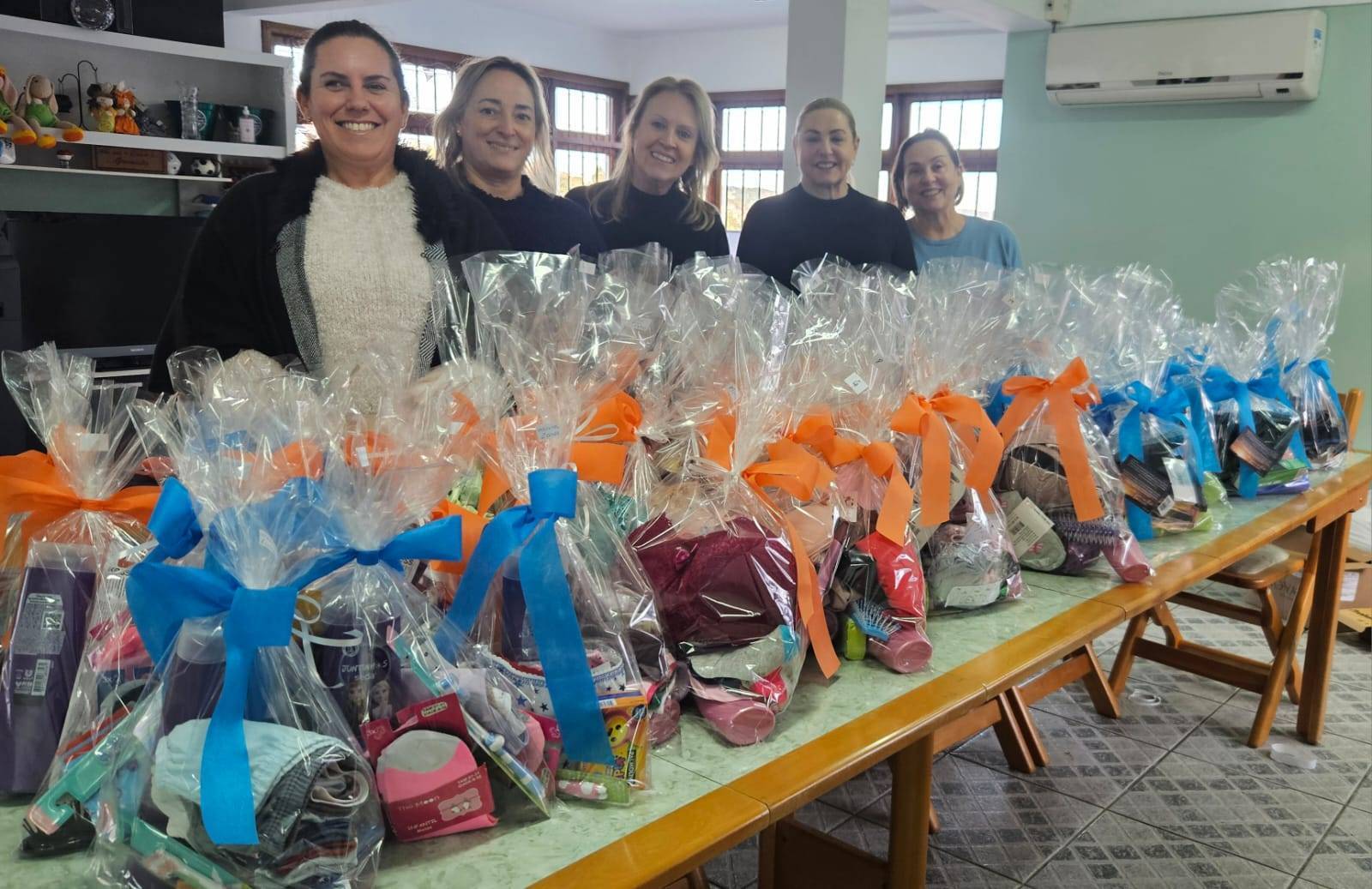 O Rc Mulheres da Serra , juntamente com mulheres voluntárias da cidade de Bento gonçalves, unidas montaram kits de roupas íntimas e de higiene pessoal, para homens,mulheres e crianças assolados pela enchente.Obrigada presidente Iraci Vasques e aos envolvidos .